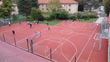 Každou velkou přestávku chodí děti z celého prvního stupně na školní hřiště, kde si mohou půjčit míče a různé sportovní vybavení. Děti z druhého stupně také mohou chodit ven. Účast je menší, ale několik fotbalistů, basketbalistů nebo volejbalistek hřiště také solidně zaplní. Žáci pátých tříd se pravidelně ráno otužují. V otužování budou pokračovat po celý rok. Čtvrťáci mají každé ráno, než začnou přemýšlet, rozcvičku na hudbu.